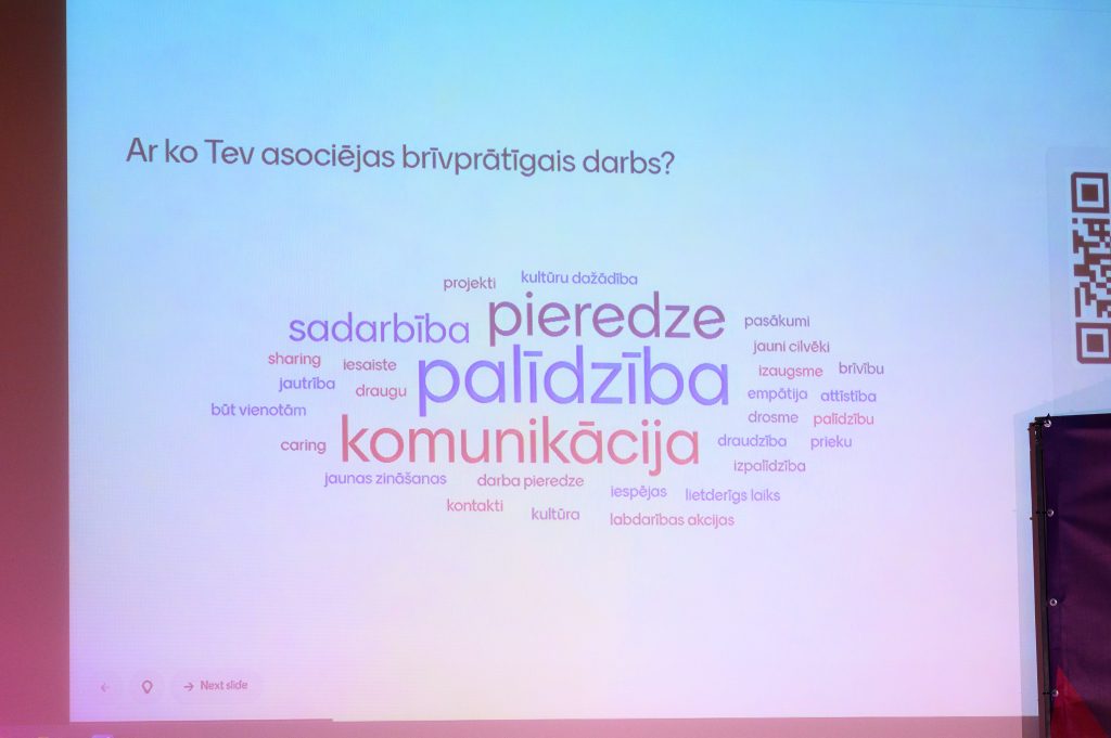 In the opening part, moderator Iveta Graudiņa invited participants to reflect on their own experience: who had already been a volunteer, who was still considering getting involved, and who had not yet dared to take the first step. This simple activity revealed an important trend — young people are interested, but they often lack information, a sense of security, and confidence that they are truly welcome in organizations.
